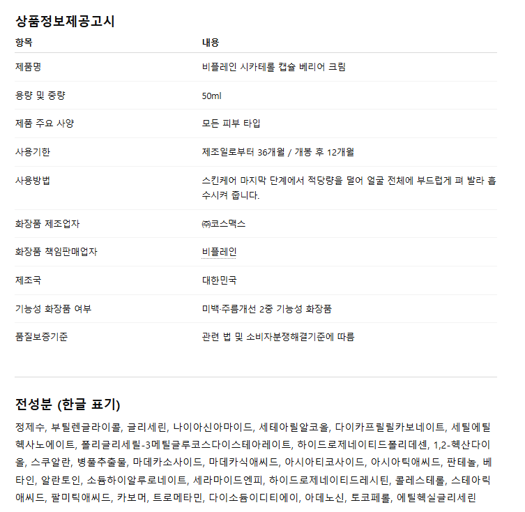 HOME > 화장품/미용 > 스킨케어 > 크림 > 비플레인 시카테롤 캡슐 베리어 크림 50ml