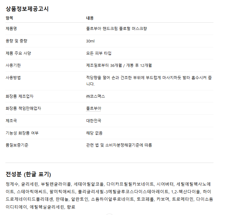 HOME > 화장품/미용 > 바디케어 > 핸드케어 > 플르부아 핸드크림 플로럴머스크향 30ml