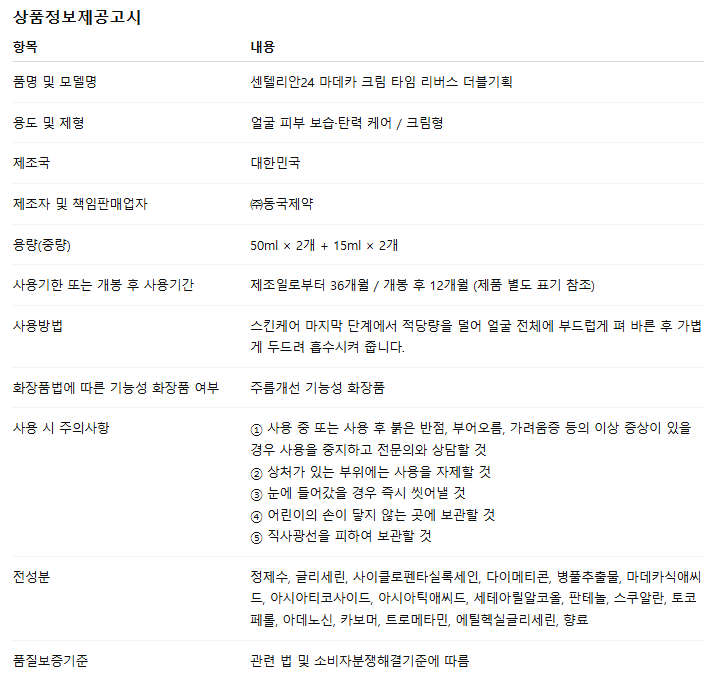 HOME > 화장품/미용 > 스킨케어 > 크림 > 센텔리안24 마데카 크림 타임 리버스 더블기획 50ml 2개 + 15ml 2개