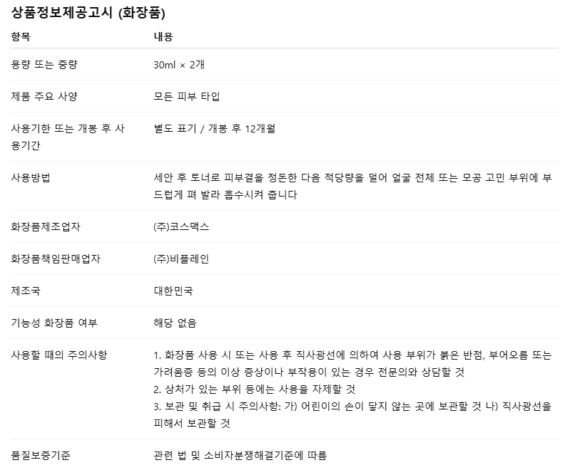 비플레인 녹두 모공 타이트업 세럼 30ml+30ml