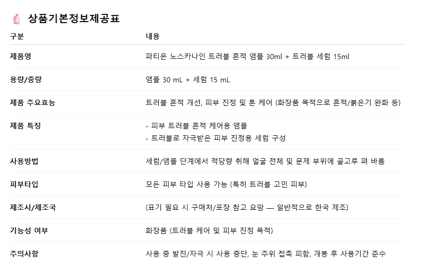파티온 노스카나인 트러블 흔적 앰플 30ml + 트러블 세럼 15ml