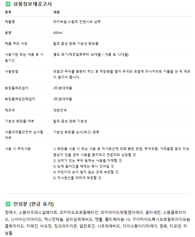 HOME > 화장품/미용 > 헤드케어 > 샴푸 > 마이녹셀 스칼프 인텐시브 샴푸 400ml